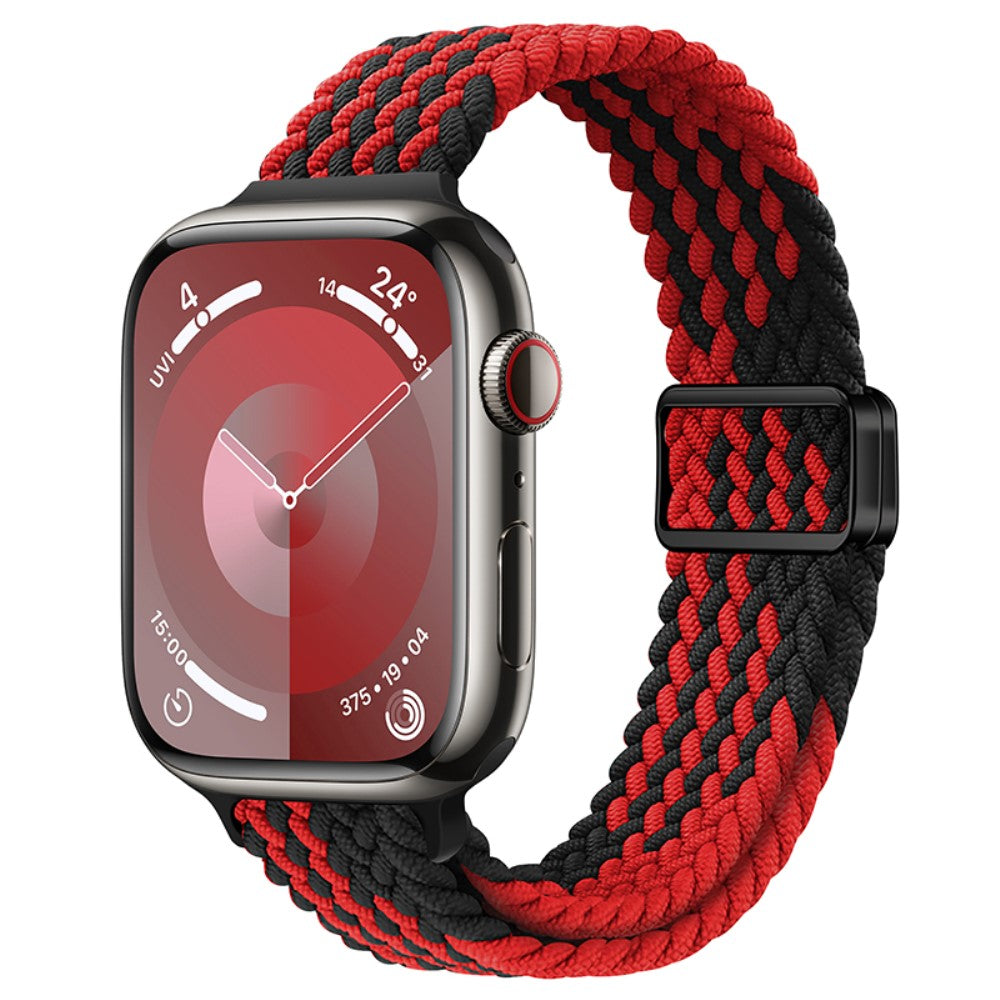 KALEBOL Bracelet de montre tressé Apple Watch Series 10 42mm Bracelets sport magnétiques en nylon - Texture Z + Noir Rouge