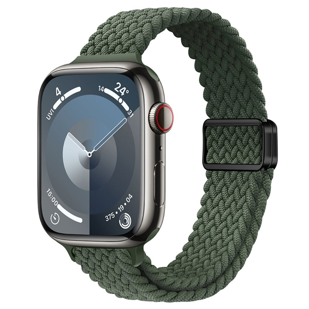 KALEBOL Bracelet de montre tressé Apple Watch Series 10 42mm Bracelets sport magnétiques en nylon - Vert Olive Foncé