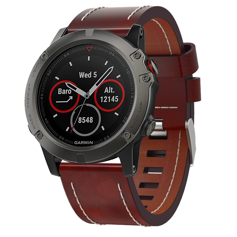 KALEBOL KLB-CXZP-001 For Garmin QuickFit / Fenix 7X / 6X Strap 26mm Genuine Cow Leather Watch Band - Brown