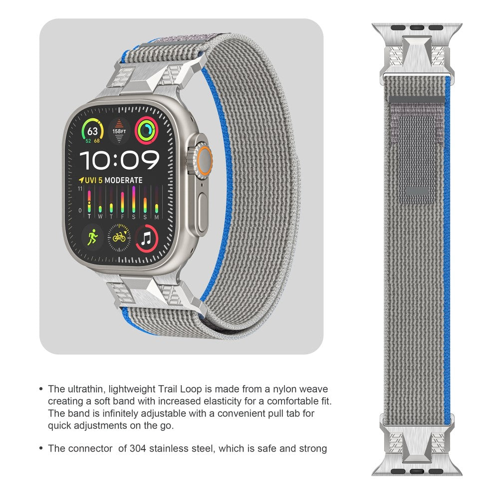 KALEBOL KLB-YJHHNL-001 Pour Apple Watch Ultra 2 Ultra 49mm / 9 8 7 45mm / 6 5 4 SE (2023) SE (2022) SE 44mm / 3 2 1 42mm Bracelet montre en nylon - Bleu+Gris