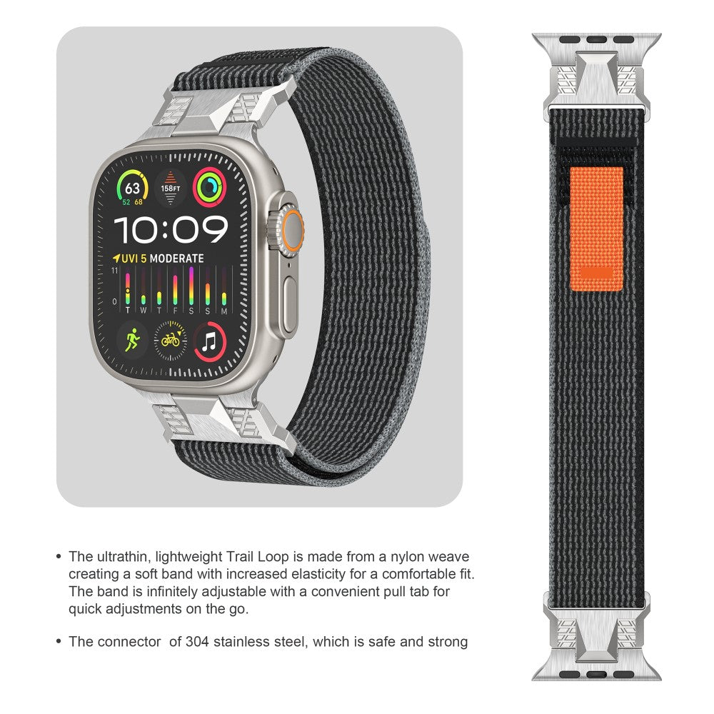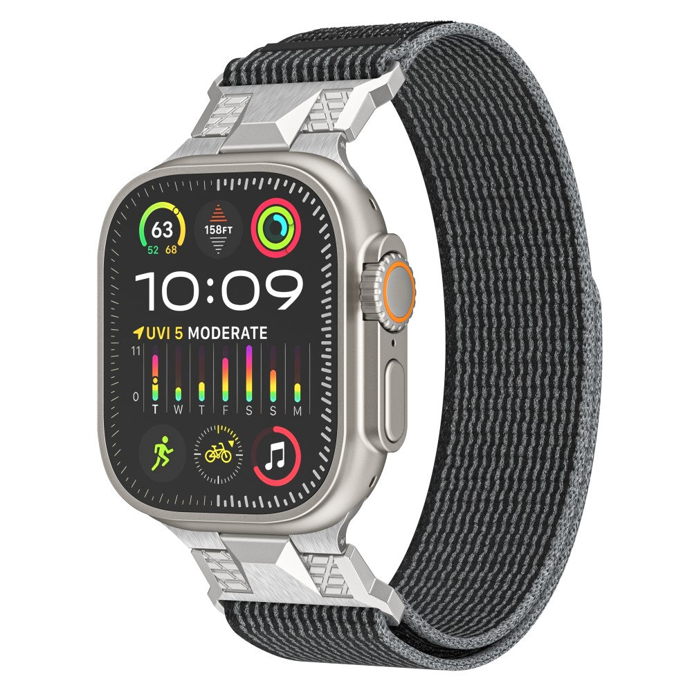 KALEBOL KLB-YJHHNL-001 Pour Apple Watch Ultra 2 Ultra 49mm / 9 8 7 45mm / 6 5 4 SE (2023) SE (2022) SE 44mm / 3 2 1 42mm Bracelet montre en nylon - Noir+Gris