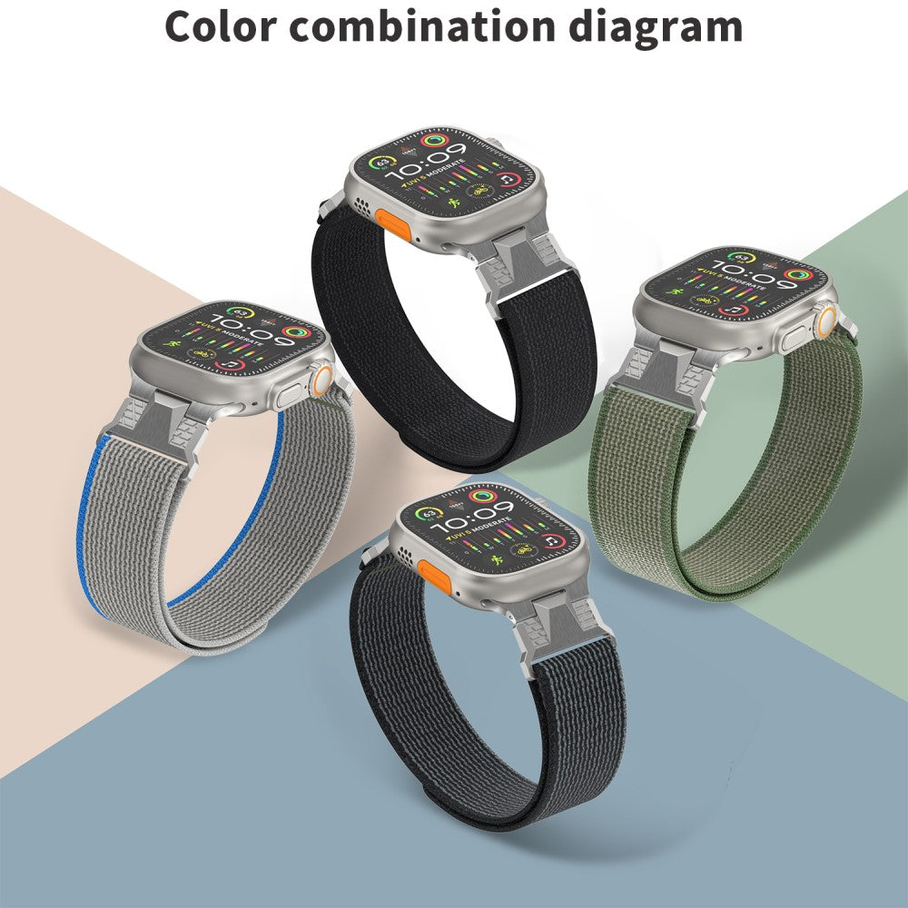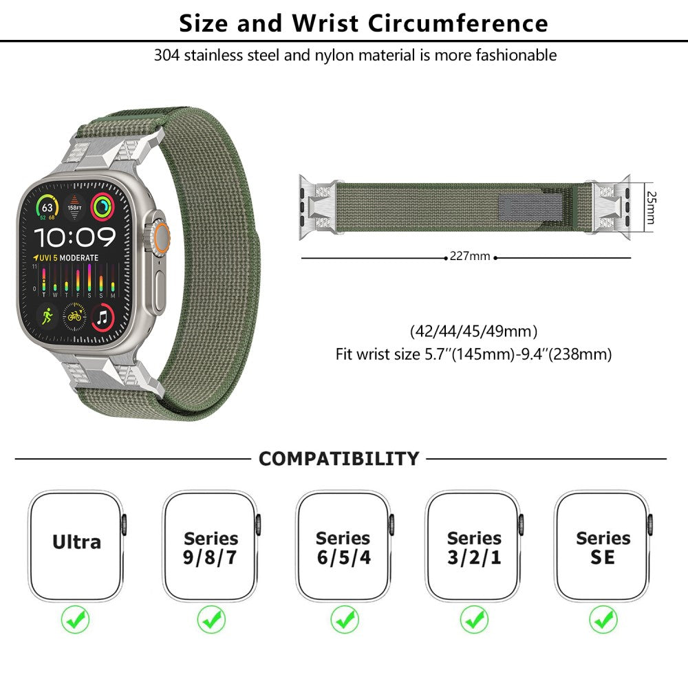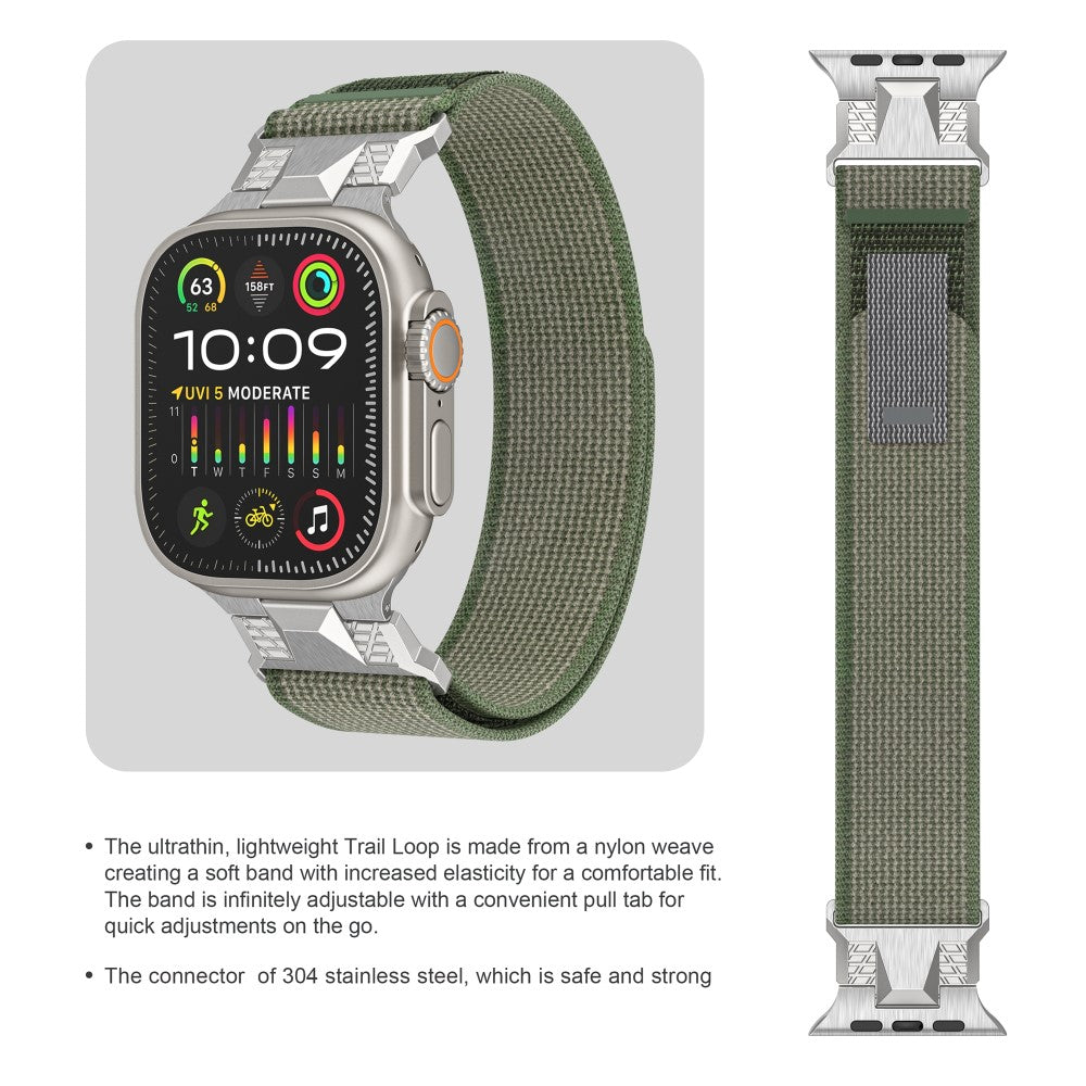 KALEBOL KLB-YJHHNL-001 Pour Apple Watch Ultra 2 Ultra 49mm / 9 8 7 45mm / 6 5 4 SE (2023) SE (2022) SE 44mm / 3 2 1 42mm Bracelet Nylon - Vert Armée