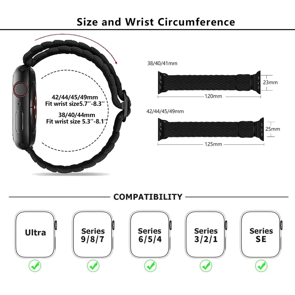 KALEBOL Pour Apple Watch Ultra 2 49mm / 9 8 7 45mm / 6 5 4 SE (2023) SE (2022) SE 44mm / 3 2 1 42mm Bracelet de montre tressé en nylon - Noir+Blanc