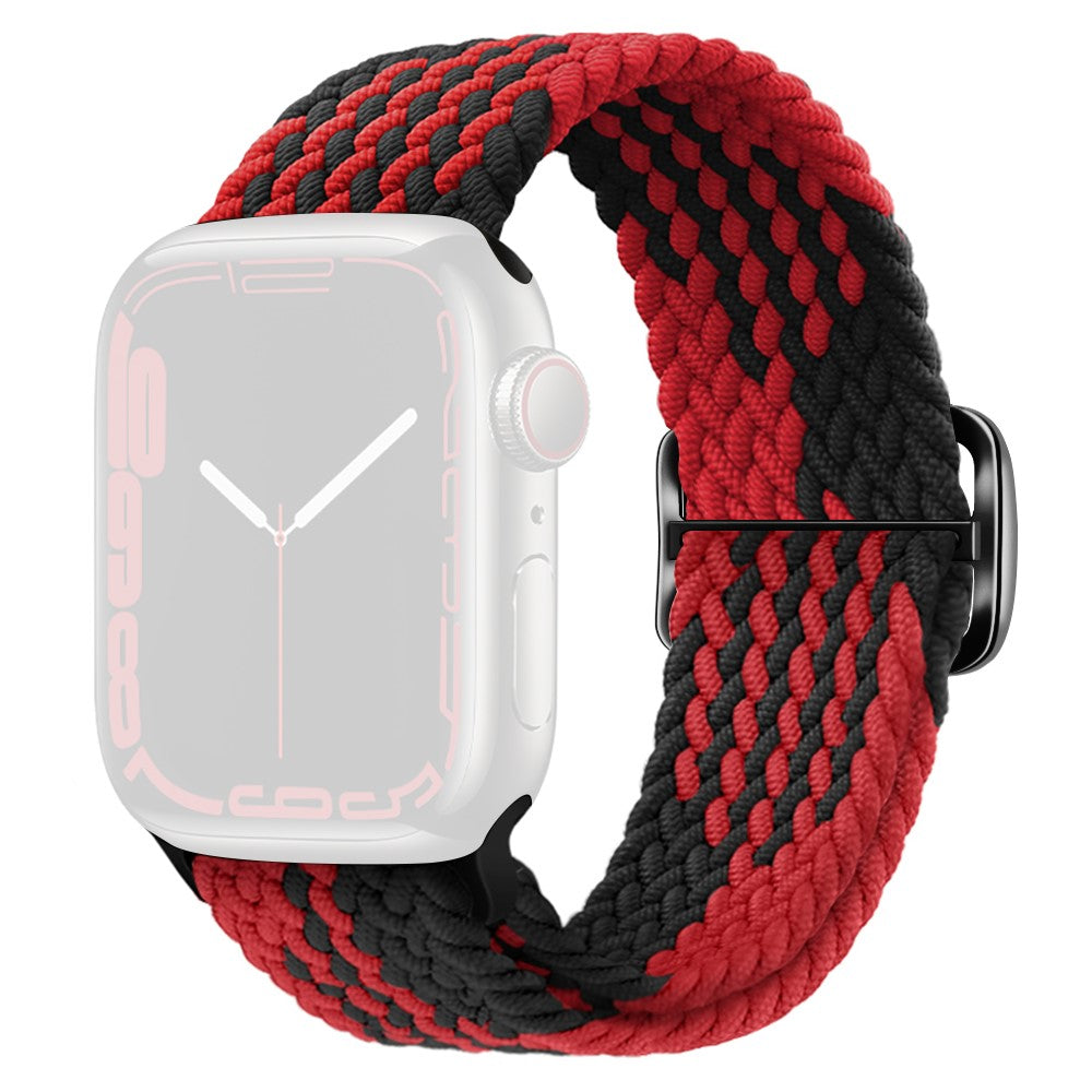 KALEBOL Pour Apple Watch Ultra 2 49mm / 9 8 7 45mm / 6 5 4 SE (2023) SE (2022) SE 44mm / 3 2 1 42mm Bracelet de montre tressé en nylon - Noir+Rouge