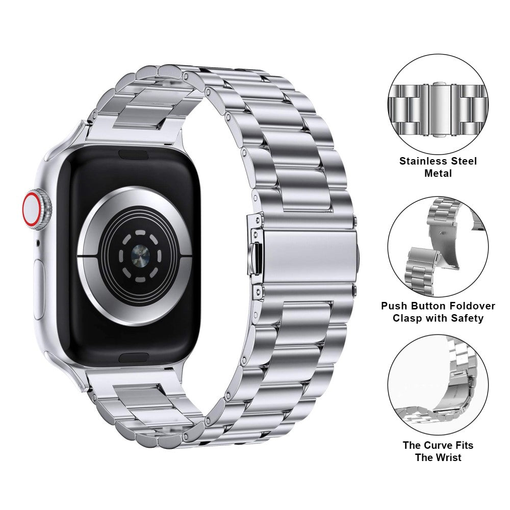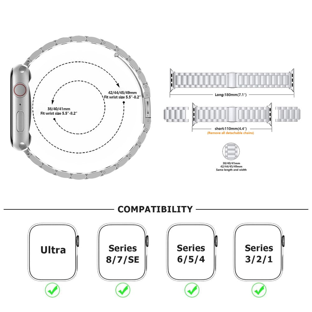 KALEBOL Pour Apple Watch Ultra 2 Ultra 49mm / 9 8 7 45mm / 6 5 4 SE (2022) SE (2023) SE 44mm / 3 2 1 42mm Bracelet montre en acier inoxydable - Argent+Or Rose