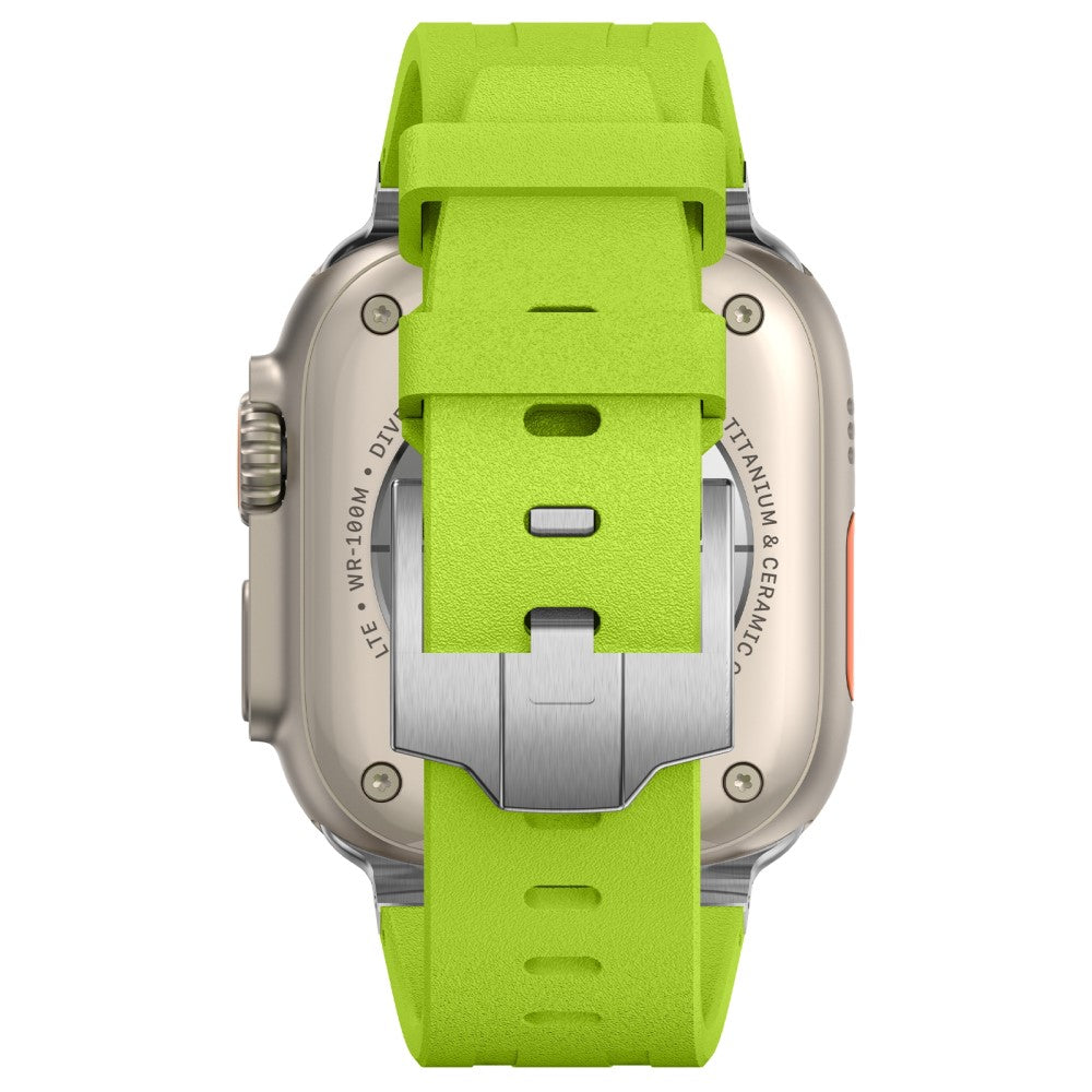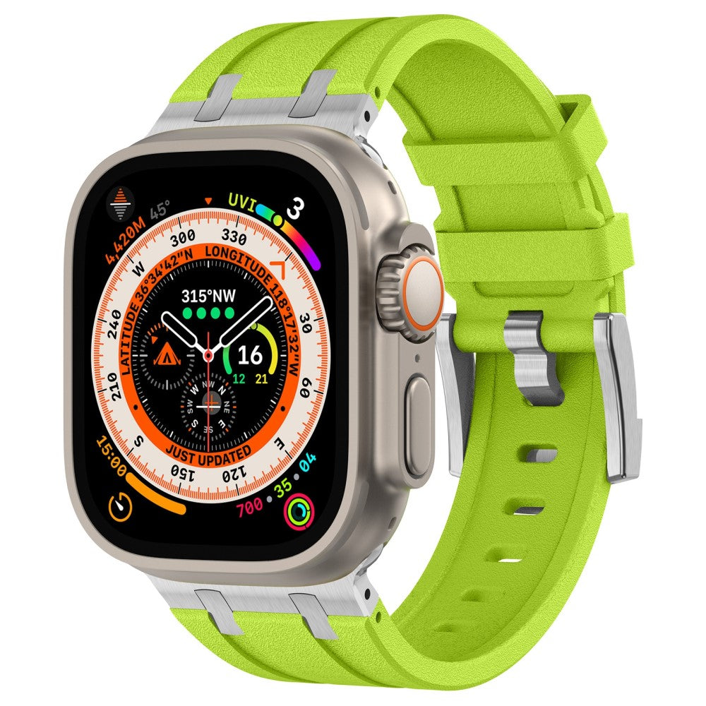 KALEBOL Pour Apple Watch Ultra 2 Ultra 49mm / Series 9 8 7 45mm / 6 5 4 SE (2022) SE (2023) SE 44mm / 3 2 1 42mm Bracelet en silicone - Argent+Vert