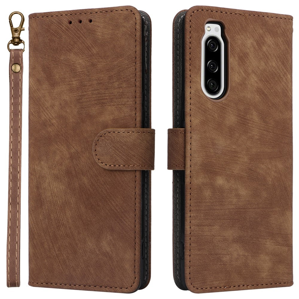 Pour Sony Xperia 5 Wallet Cell Phone Case RFID Blocking PU Leather Phone Stand Cover - Marron