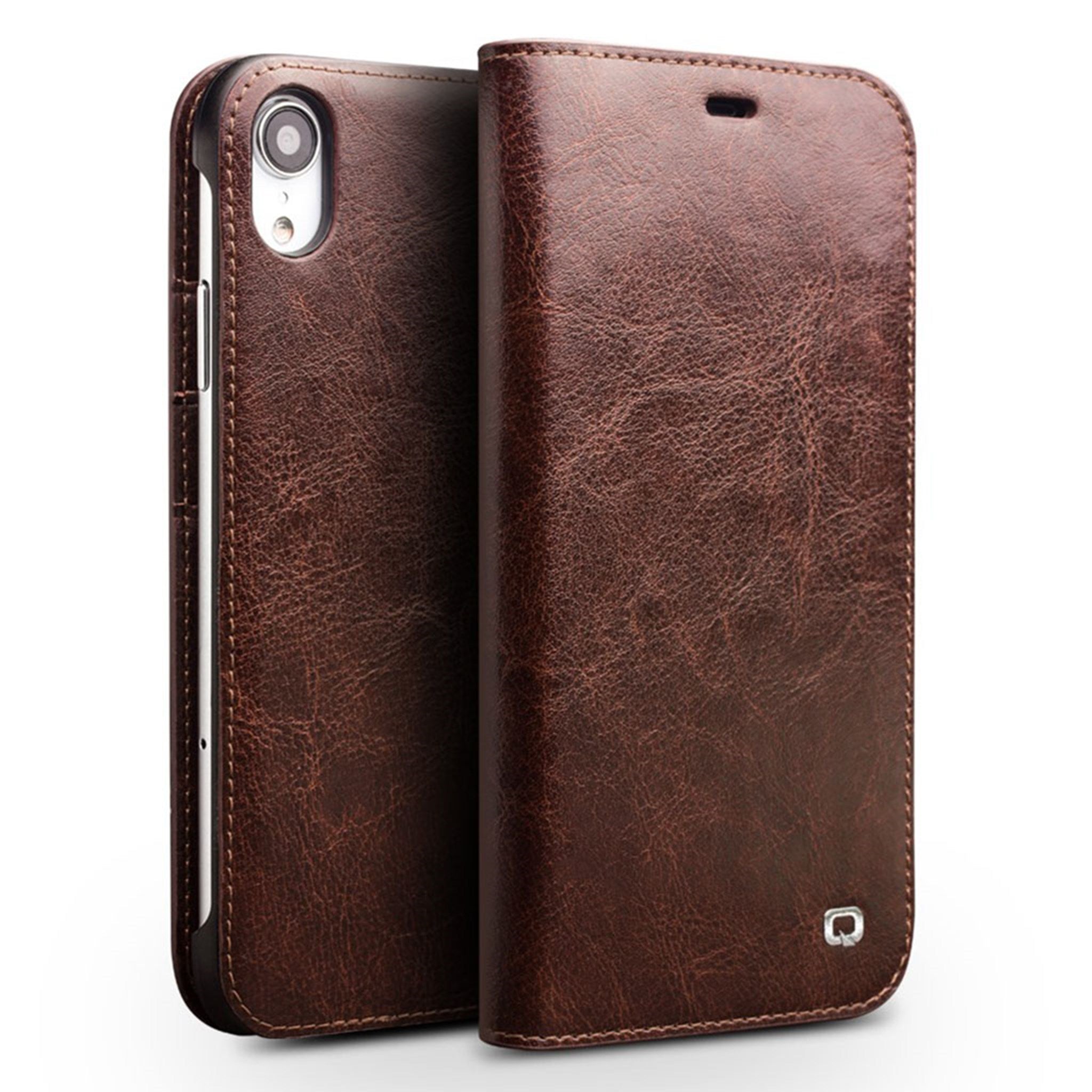 QIALINO iPhone Xr étui à rabat en cuir de vachette véritable - Marron