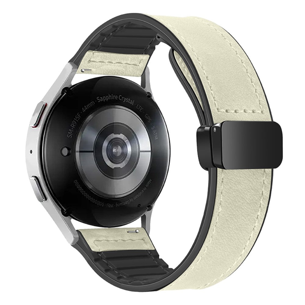 Samsung Galaxy Gear S3 Classic / Huawei Watch GT 4 46mm Bracelet montre magnétique en cuir de vachette véritable, 22mm - Gris
