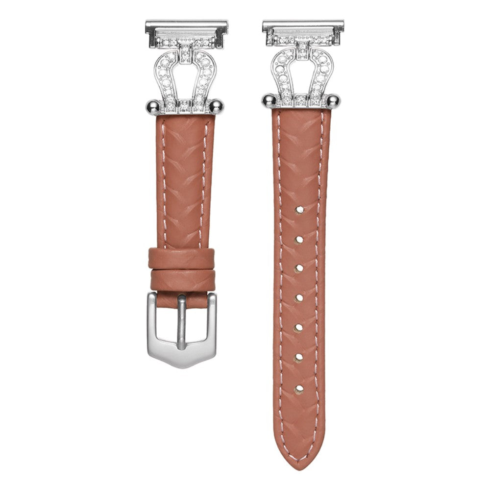 Samsung Galaxy Watch6 Classic 47mm 43mm / GarminActive 5 Watch Strap 20mm U-shape Cowhide Leather Band - Bean Pink / Silver Buckle Buckle