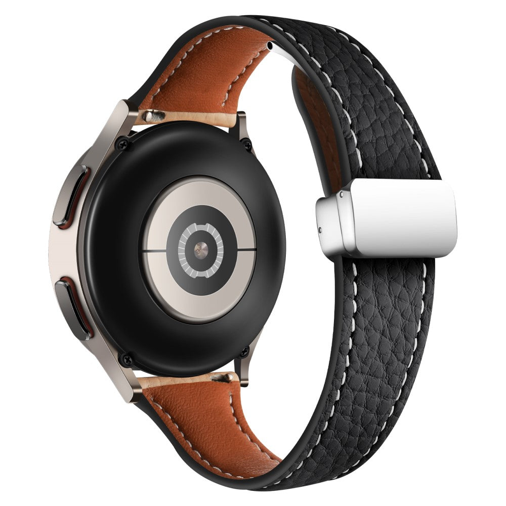 Samsung Galaxy Watch6 / Watch6 Classic Leather Band 20mm Litchi Texture Strap with Folding Buckle - Noir