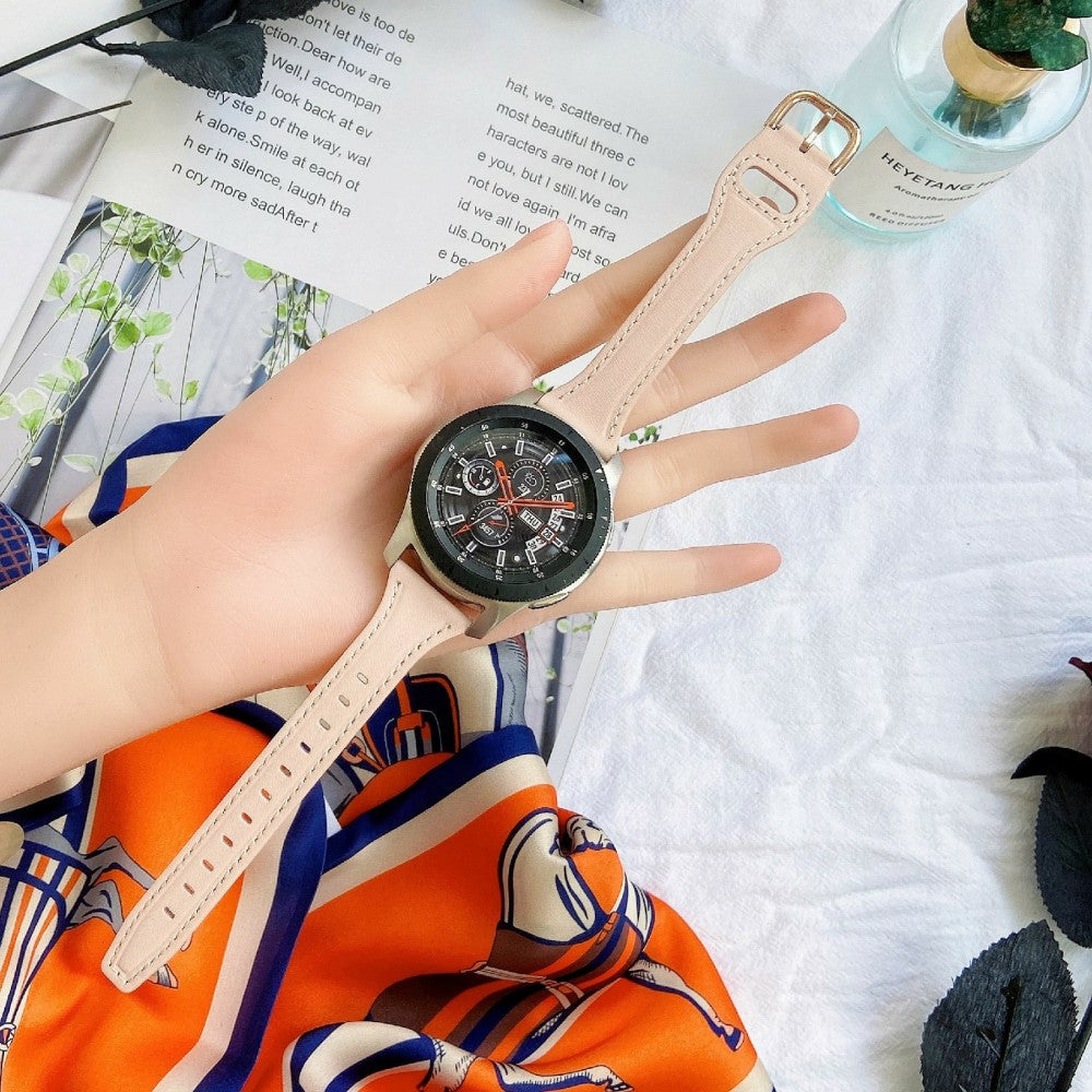 Samsung Galaxy Watch7 44mm Genuine Cow Leather 20mm Watch Strap - Pink+Rose Gold Buckle