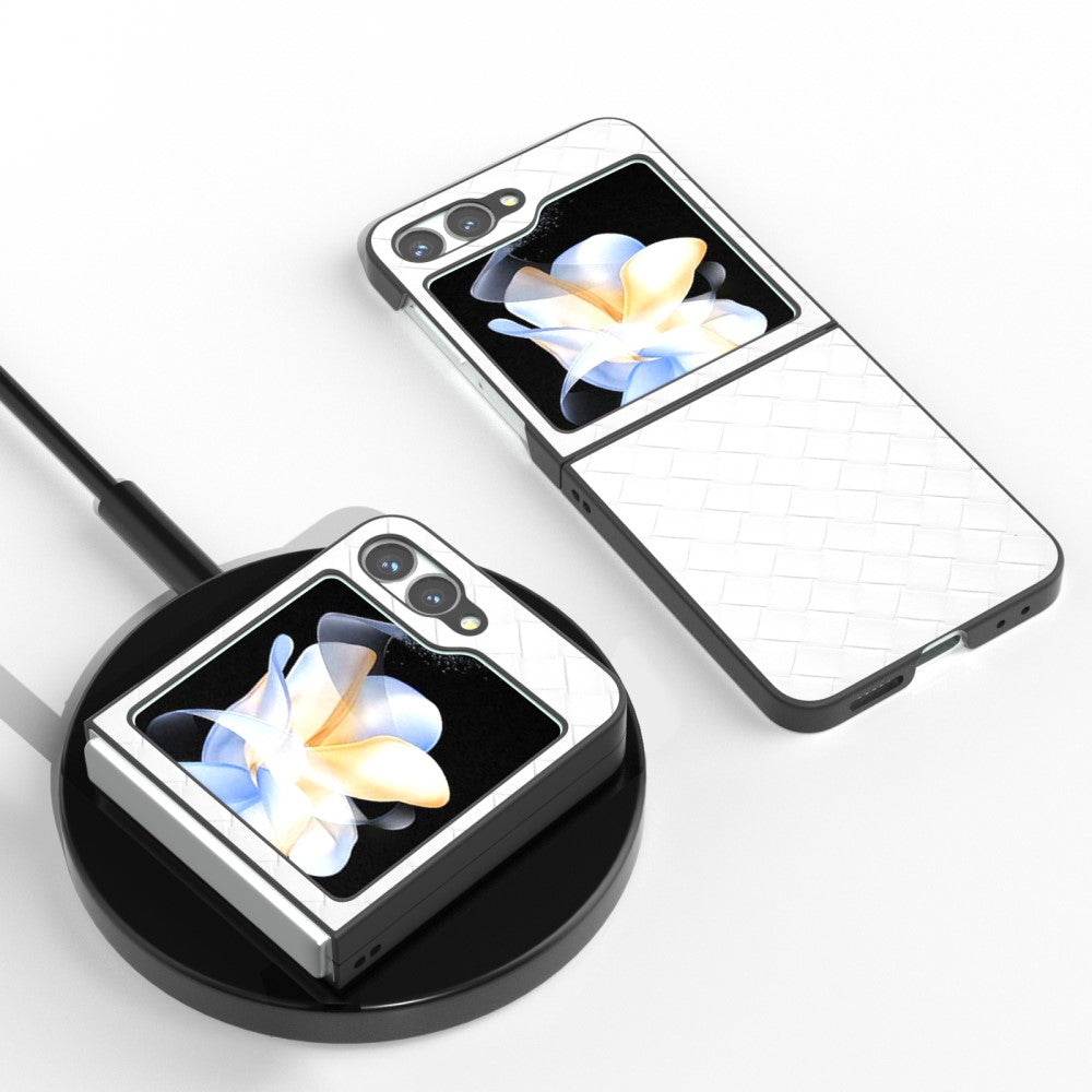 Samsung Galaxy Z Flip6 5G Case Woven Texture Leather and Bump Resistant Protective Phone Cover - Blanc