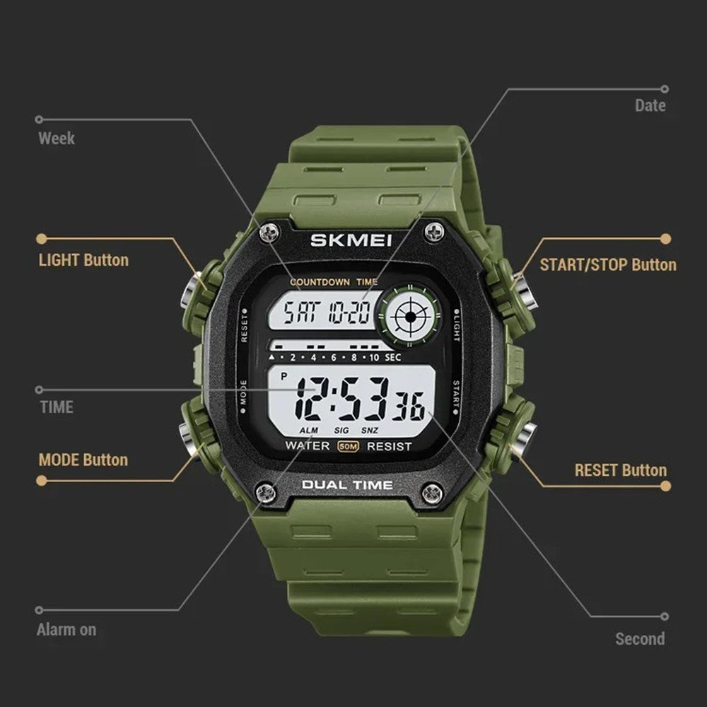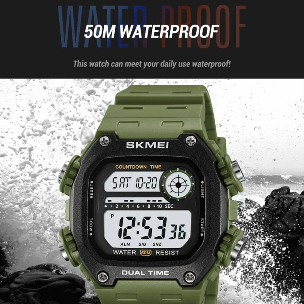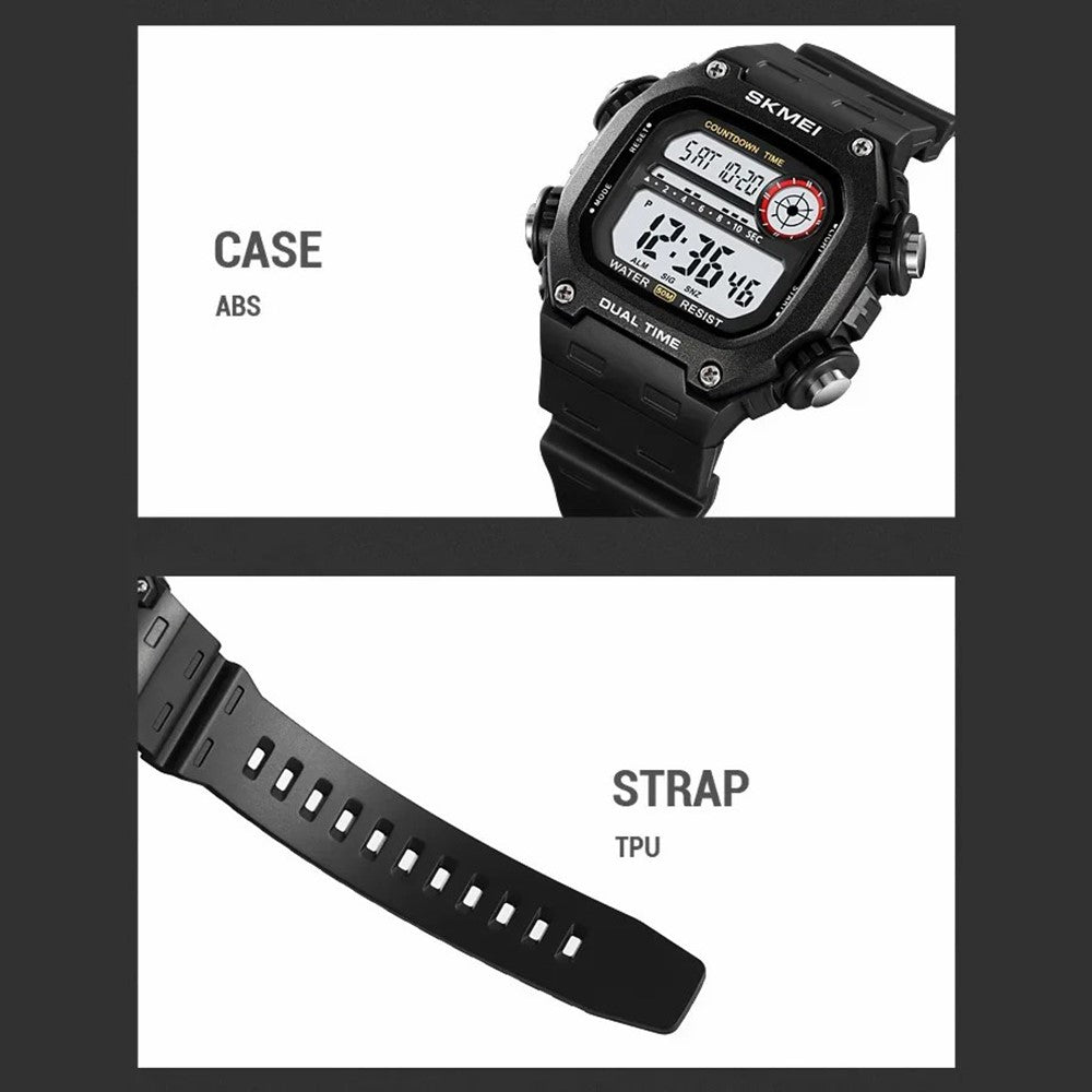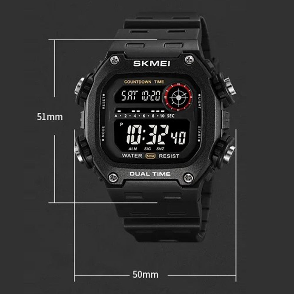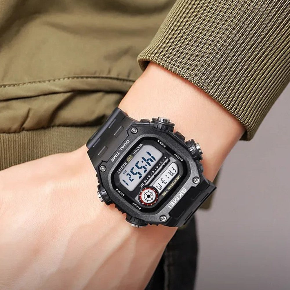 SKMEI 2126 Montre digitale carrée étanche - Noir / Cadran Noir