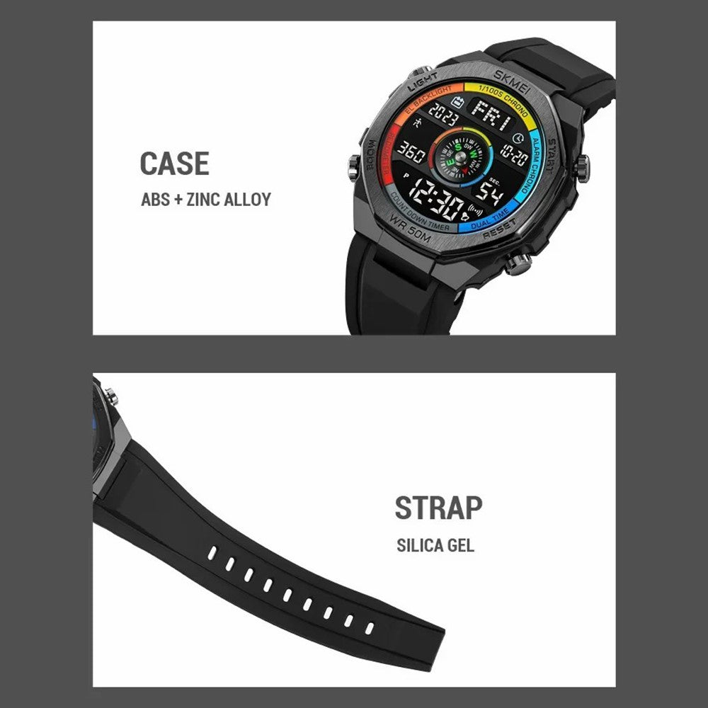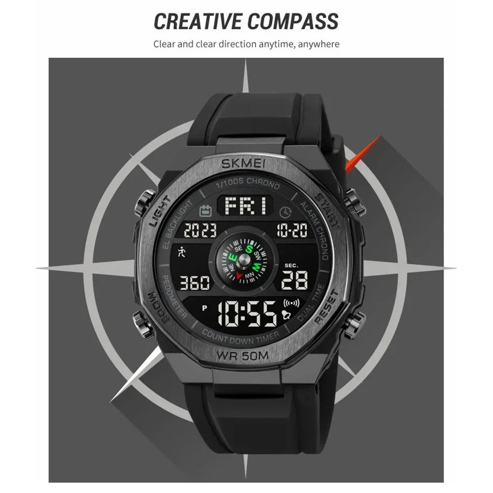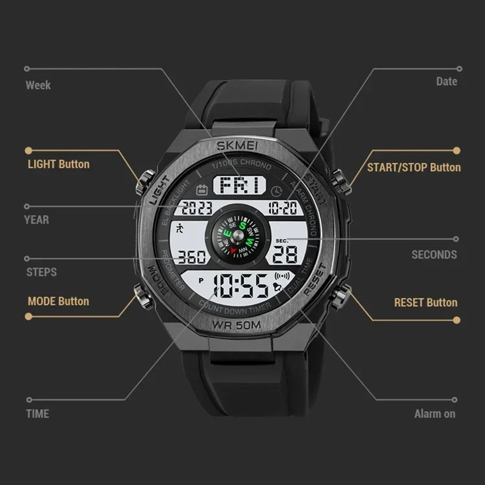 SKMEI 2209 Podomètre - Boussole - Montre digitale - Cadran Noir / Blanc