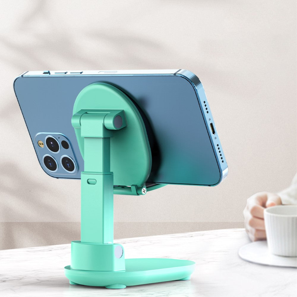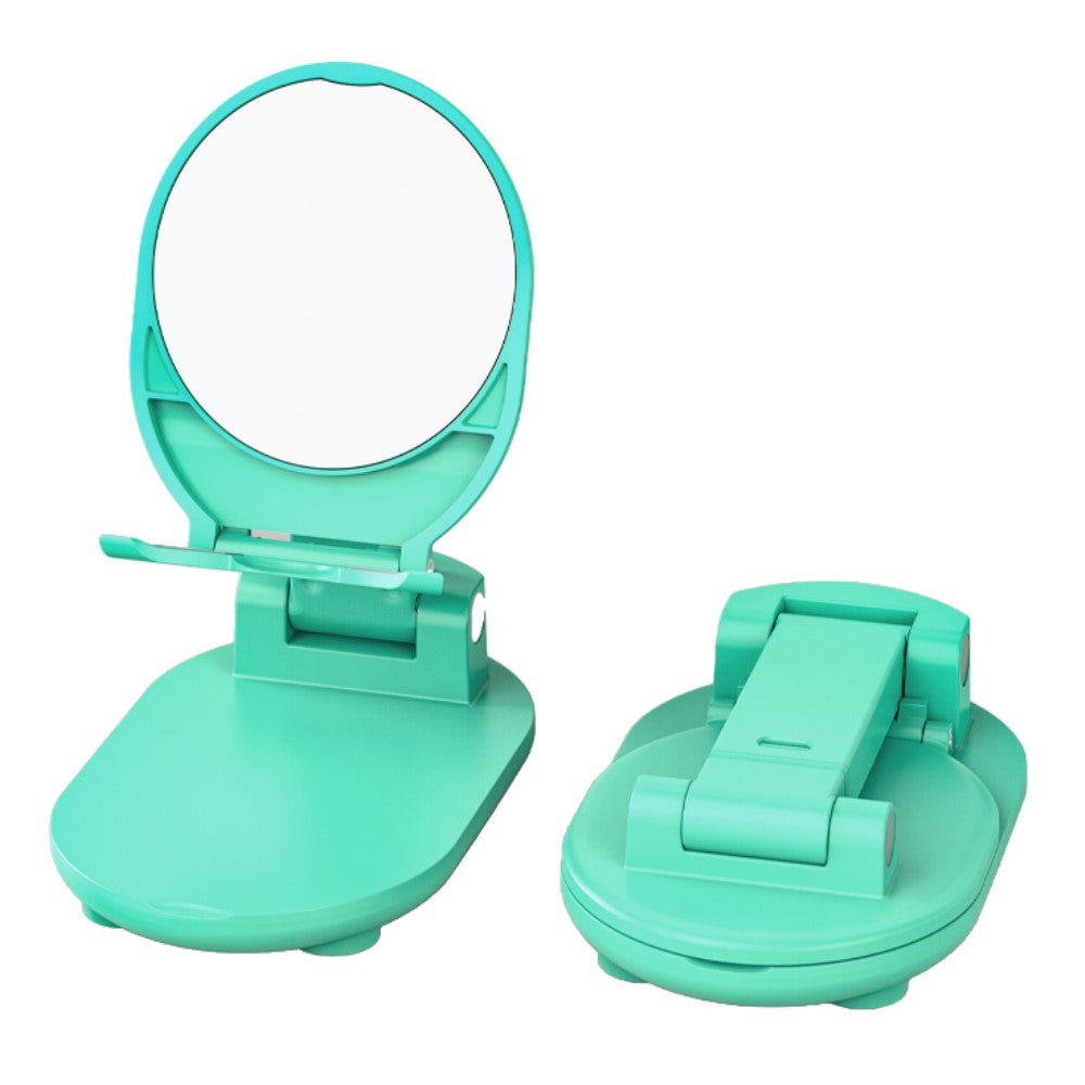 Support universel pliable pour téléphone de bureau avec miroir de maquillage - Bleu Lac