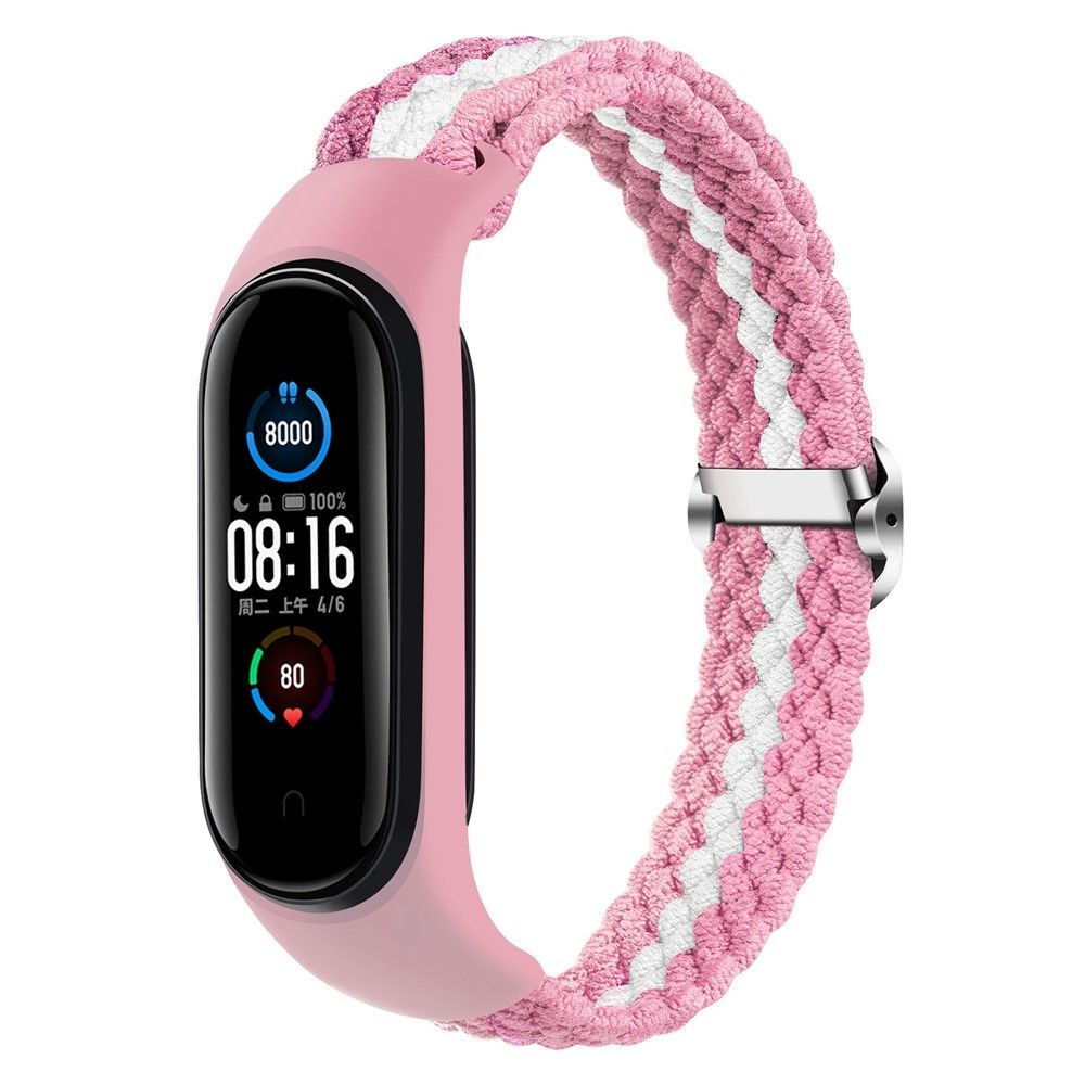 For Xiaomi Mi Band 4/5/6 NFC Nylon Braided Smart Watch Band Color Contrast Adjustable Wrist Strap Replacement - Pink / White