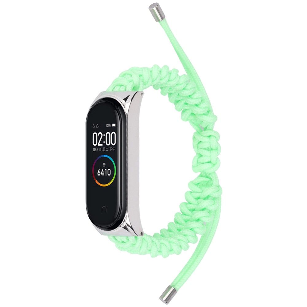 For Xiaomi Mi Band 5/6 Nylon Braided Rope Watch Strap Adjustable Replacement Wrist Band - Light Green