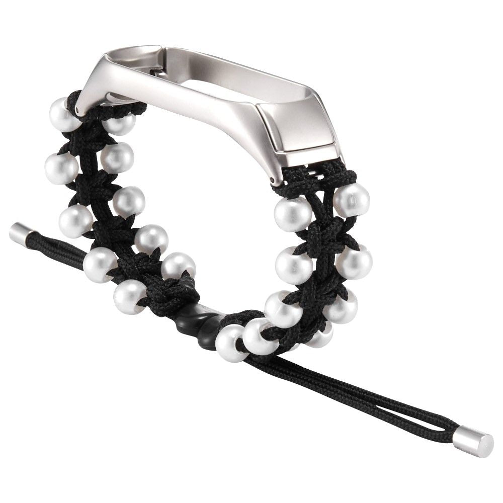 For Xiaomi Mi Band 5/6 Stylish Beads Decor Replacement Wrist Band Drawstring Design Adjustable Nylon Rope Watch Strap - Black