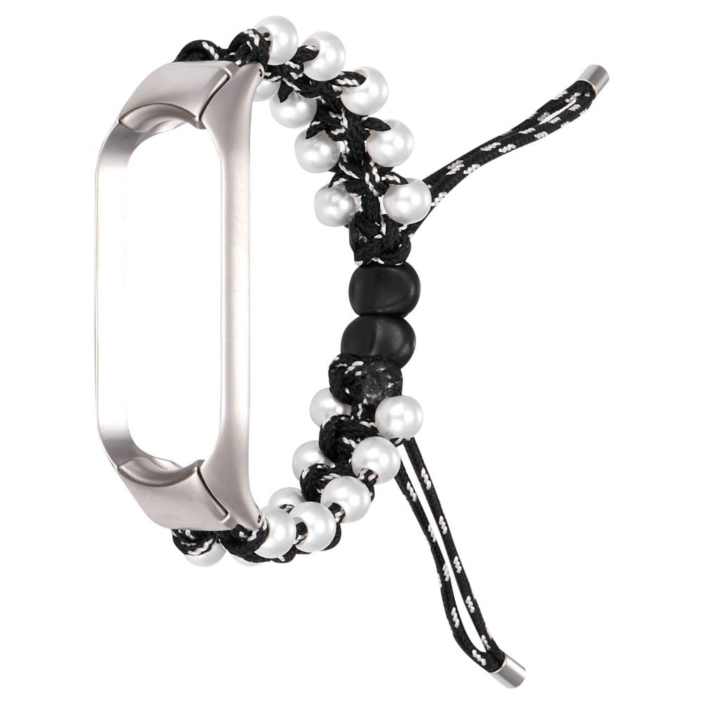 Xiaomi Mi Smart Band 6 / 5 stylish bead décor drawstring design watch strap - Black / White