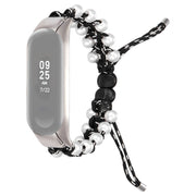 For Xiaomi Mi Band 5/6 Stylish Beads Decor Replacement Wrist Band Drawstring Design Adjustable Nylon Rope Watch Strap - Black / White