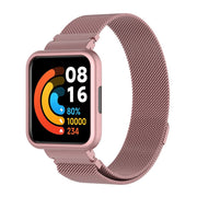 For Xiaomi Redmi Watch 2 Lite Metal Milanese Magnetic Wrist Strap+Watch Frame Case - Rose Pink