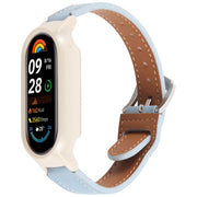 Xiaomi Smart Band 8 Boîtier de montre résistant aux chocs intégré Bracelet de montre en cuir ultra-fibre à déclenchement rapide - Beige / Bleu