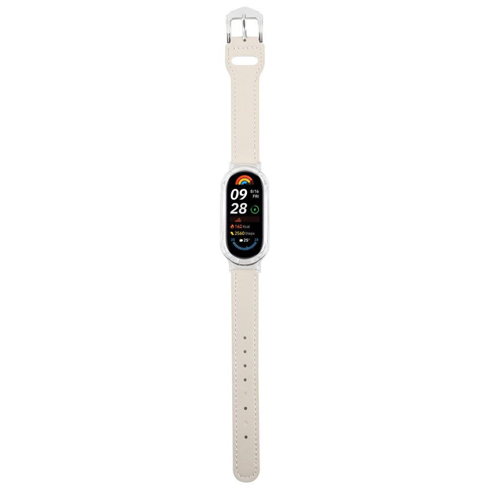 Xiaomi Smart Band 8 Boîtier de montre résistant aux chocs intégré Bracelet de montre en cuir ultra-fibre à ouverture rapide - Transparent / Beige