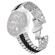 Yamay SW022 Bracelet de montre à 5 perles en acier inoxydable avec fermoir papillon - Argent + Noir
